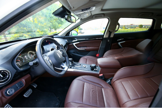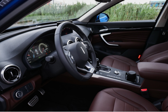 P8的内饰设计简约大方,律动的线条为内饰带来了不错的层次感。既然主打豪华品牌内饰用料上自然要说的过去,P8的中控台采用了大量的软性材质包裹并在纹理细节上有着不错的处理,从而提升了不少内饰豪华感。