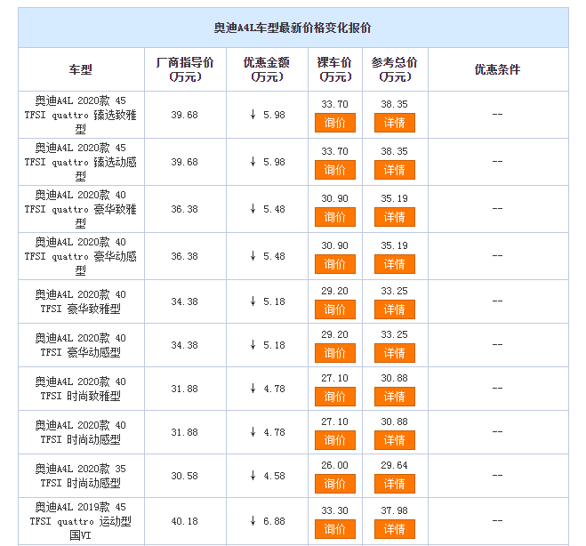 【19年卓粤经销商-深圳奥德奥迪】尊贵热线:400-830-4732 店址:罗湖区延芳路55号(原东益汽车城100米)】 【到店礼】到店即赠送精美礼品一份。 【评估礼】到店评估二手车即送380元的空调杀菌一次。 【特价礼】30台特价车;仅5台Q5享7.9折内部员工价。 【购车礼】以旧换新购车补贴5000元,额外再送20600元豪华礼包。 【置换礼】同品牌置换: 高出市场价5000元收购,享受高达2万元置换补贴。 【转介礼】老客户成功转介绍新客户后可赠送原厂机油保养一次。 【金融礼】首付低至一成,A3/Q2L/Q3享受24期0利率,赠送交强险,A3/Q2L/Q3月供388元,A4L月供666元,Q5L月供888元,A6L月供988元。 【大用户礼】知名企业根据选择不同车型可享受4000-20000元不等的额外优惠。高级教师职称等大用户额外补贴3000-8000元。 【医务专享礼】抗疫定点医护人员及其直系家属,额外补贴3000-10000元。 【增再购礼】老客户或直系亲属成功再购奥迪车可赠送原厂机油保养三次。 买奥迪、到奥德!深圳车管所指定上牌点:30分钟打临牌,一小时上牌服务,免去车管所排队烦恼,一对一VIP服务!