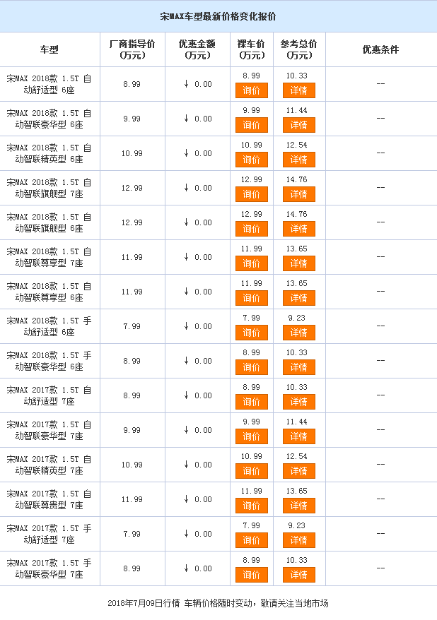 近日,本店内有宋MAX销售,颜色可选,目前购车部分车型可优惠0万元,感兴趣的朋友可以到店咨询购买,详情见下表: