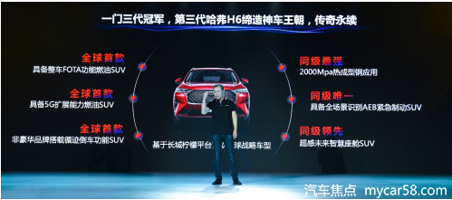 第一代哈弗H6开创了中国汽车向上挺进的新时代;第二代哈弗H6在产品力的大幅提升,拥有行业领先的智能安全水准,为神车发展注入全新势能,而且在全球市场上也开花结果,开启了神车向全球的征程;对于第三代哈弗H6,长城汽车股份有限公司副总裁孟祥军表示,“哈弗品牌拥有了全新的柠檬平台,就是要做下一个时代的引领。第三代哈弗H6作为柠檬平台首款战略车型,正是为开启智能时代迈出的重要一步。”