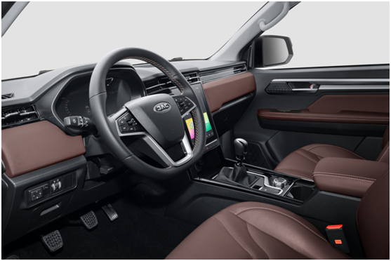 T8PRO外观自不用说,威猛强悍,肌肉感满满,但它的内饰一改传统皮卡货车感,更偏向乘用化设计,讲求视觉冲击感和触觉舒适感。采用大面积软包内饰,颇具未来感和精致感,体现简约风格。座椅采用SUV式运动座椅,造型时尚前卫,后排座椅可以翻倒,同时增加中央扶手,增大了驾乘的舒适性和支撑性。