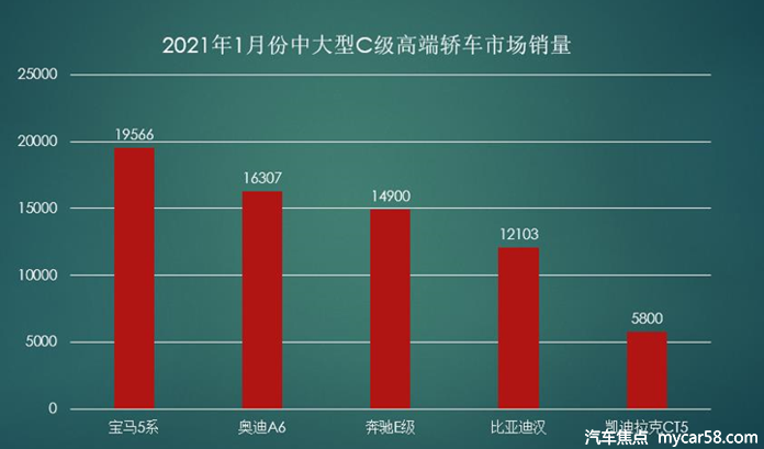 在中国市场,比亚迪汉自去年7月上市以来,就一直处于持续热销、供不应求的状态。2021年1月,汉热销12103辆,成为中国汽车工业首个月销破万辆的高端C级轿车,并继续稳企25万级中大型轿车四强阵营。仅居于宝马5系、奥迪A6L、奔驰E系之后,填补了中国品牌在中大型轿车市场热销车型的空白。
