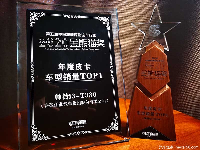 2021年4月15日-16日,第四届中国(成都)新能源汽车产业大会暨第五届中国新能源物流车行业“金熊猫奖”颁奖典礼在成都隆重举行。凭借品牌硬核实力,帅铃i3-T330纯电动皮卡荣膺“金熊猫·年度皮卡车型销量TOP1”大奖,帅铃i5-V330 纯电动冷藏车荣膺“金熊猫·年度冷藏车推荐车型”大奖。