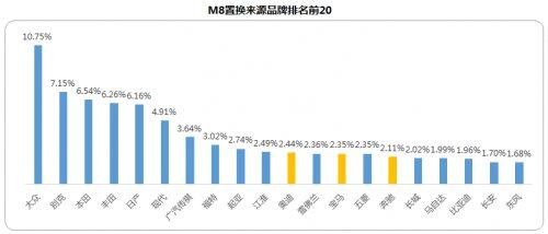 值得一提的是,选购传祺M8的客户中,置换的比例相当可观。数据显示,2020年1月至2021年6月,置换传祺M8的客户超过1万台。从置换来源品牌来看,合资+进口的品牌占比高达68.8%,比较集中置换来源为大众、别克与丰田等;保时捷、路虎、奔驰、宝马等豪华品牌置换占比达到10%,其中不乏保时捷、奔驰S级等百万豪车车主,选择置换或增购买入传祺M8。由此可见,传祺M8已经受到对于品质要求较高的客户广泛认可。