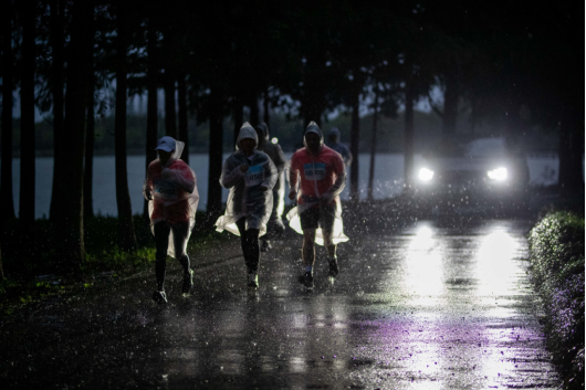 选手们坚持不懈,夜以继日不停跑完成24小时比赛
