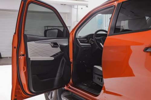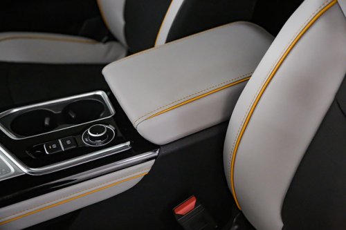 在细节处理方面,江西五十铃D-MAX V-CROSS也很用心,黄色缝线很细腻,搭配浅色内饰,点缀的恰到好处。新车还配备64色无极车载氛围灯。