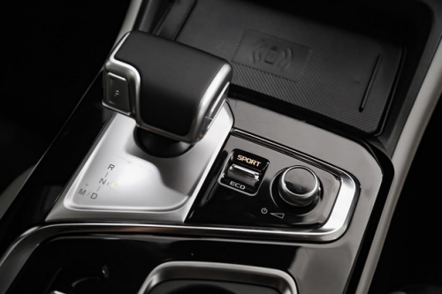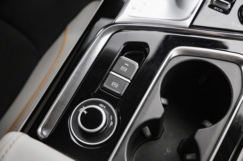 颇有设计感的挡杆,前方为无线充电板,旁边有驾驶模式调节按键,电子手刹+自动驻车功能。往后看,D-MAX的精髓,两驱、四驱、低速四驱的调节旋钮。