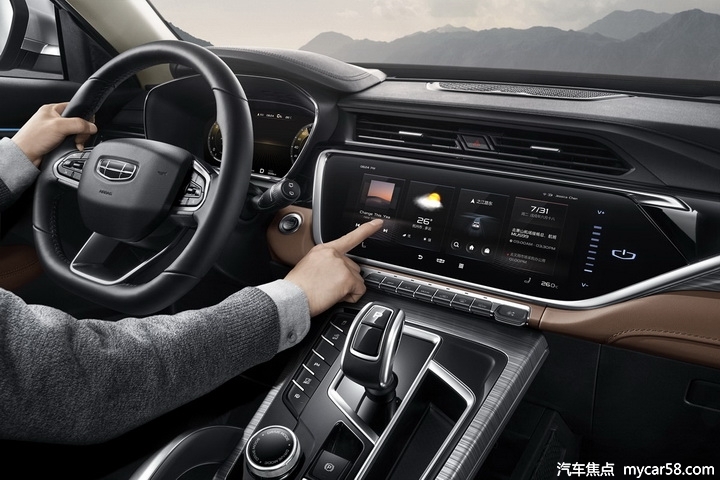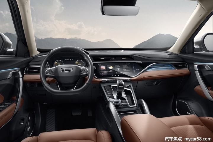 内饰方面,博越PRO同样主打豪华和高级感。T字型的中控台采用了黑棕双色搭配,尺寸更大的横贯式中控屏拉宽了视觉感受,同时屏幕四周运用镀铬饰条进行包裹,下方的常用实体按键采用钢琴烤漆进行点缀,精致感显著提升。三幅式多功能方向盘采用了时下流行的平底式设计,仪表盘也采用了全液晶材质,配合全新的电子挡杆和氛围灯,车厢内部更加豪华。