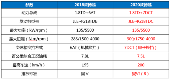 在国六来临之际,吉利博越已提早完成国五向国六的迭代升级,这个时间点恰到好处。2020款博越搭载了吉利经过重新调教的全新1.8TD的涡轮增压发动机,不仅能够轻松应对国六排放标准,而且也能满足要求更为严苛的国六B排放新规,其最大功率135kW(184Ps),峰值扭矩相比现款车型提升15N·m至300N·m,使得新款博越拥有澎湃动力的同时兼具更强的驱动力,即使在各种恶劣路况下也能够从容应对。此外新车最高车速增加至200km/h,并全新配备了电子档把,让用户尽情享受驾驶的速度与激情。