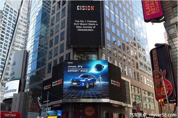 7月3日,哈弗F7登上美国纽约时代广场大屏,向世界发声,展示哈弗全新的品牌形象。