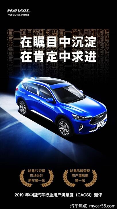 在不久前中国质量协会发布的2019年CACSI用户满意度测评结果中,哈弗F7占据“市场关注新车”排名第一位。上市不足一年,便多项荣誉傍身,无数光环笼罩,哈弗F7是当之无愧的国产骄傲。