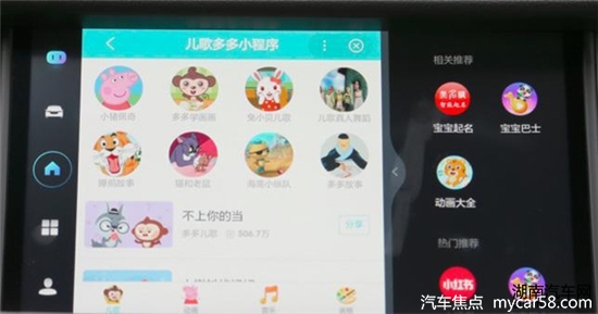 除此之外,全新哈弗H6 铂金版还内置了丰富的文娱资源,充分满足用户对于娱乐的追求。如果家里有宝宝,Hi-Life系统内置的儿歌多多小程序,可以为宝宝播放喜爱的儿歌,降低宝宝在车上哭闹的几率,孩子开心大人安心。