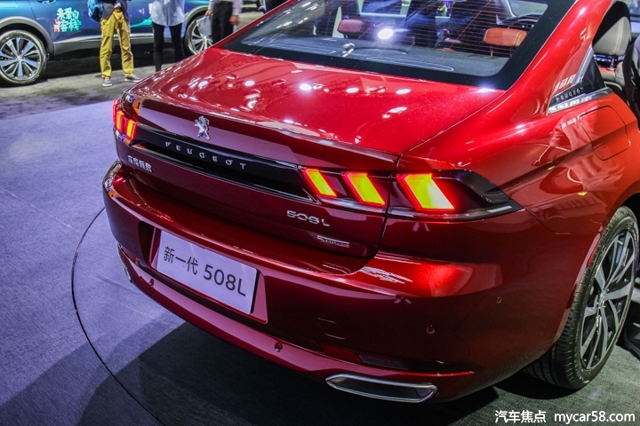 新一代508L的侧面设计延续了偏向轿跑风格的设计,流畅的C柱处理让它与传统三厢车有所区别,营造出极具视觉冲击的矫健身姿和四门轿跑般的修长比例,无论从那一个角度,都能够感受到它的潮流魅力。尾部造型同样采用标致最新的家族设计,黑色装饰条与尾灯相融合识别度足够高,尾灯组依然是最新的狮爪造型。总体来说它比迈腾时尚激进,而比雅阁、凯美瑞又更大气优雅一些。