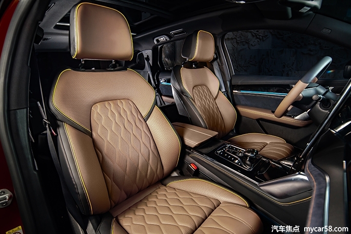 龙鳞纹豪华真皮座椅设计同样新颖,基于弗吉亚高性能骨架平台进行开发保证了座椅人体工程学设计,舒适性与支撑性表现到位。“龙鳞纹”的纹路以及赤兔棕+黑色的双色搭配,视觉质感以及触感都相当出众。