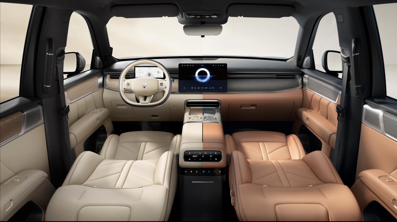 华境S以“温润科技之美”为设计理念,外观提供墨玉黑、羊脂白、玛瑙灰、琥珀蓝四种车色,更以智眸锐影前大灯、极光之翼尾灯、灵犀智慧灯营造流动光韵。内饰提供象牙米、檀香棕两种配色,以冰玉纹缝线、温雅竹韵雕饰、鎏金纹饰条构建沉浸式奢享座舱。