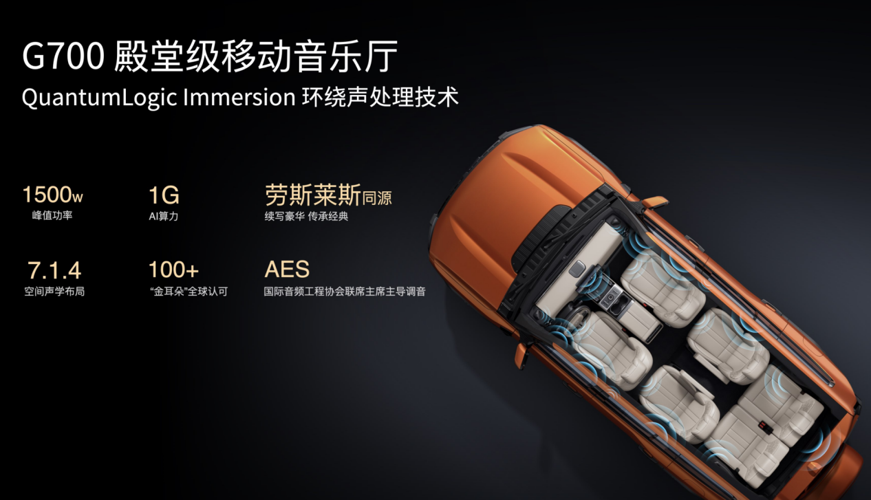 音质表现上,G700搭载劳斯莱斯同款Lexicon音响系统,精准还原音乐最初的声音,营造360°包裹的声场,即便在越野路况的颠簸环境中,也能为用户带来殿堂级听觉享受,彻底打破硬派越野车在座舱娱乐体验上的固有局限。