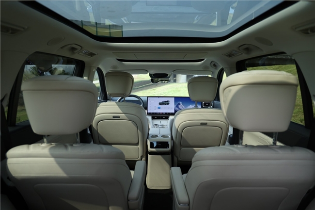 此外,一二排悠然座椅采用13层舒适层结构,配合50D高回弹海绵与花式透氧打孔工艺,即便长途乘坐也依旧保持干爽舒适。而三排全电动座椅同样支持加热与靠背调节,真正实现了“每一排都是VIP”的承诺。在夜晚行经河北路段时,256色音乐律动氛围灯与专属香氛系统共同营造出温馨舒适的座舱环境,有效缓解了长途旅行的疲惫。