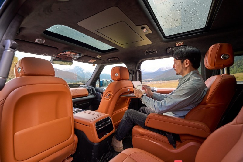 车内豪华细节更见匠心,极智四屏联动(同级唯一35.4英寸纵横天际屏、15.6英寸高清中控屏、8.8英寸后排空调屏,17.3英寸后排影院屏),在高原星空下打造移动影院,更有劳斯莱斯同款、全球唯二的Lexicon剧院级音响系统,18扬声器系统营造沉浸式听觉盛宴;5.3L智能冷暖冰箱(-6℃至50℃温控)常备冷饮,三温区健康空调15分钟极速降温,64.9%超大得房率搭配百变座椅模式;而行业首创的纵横舒压智能氧舱,采用医用VPSA供氧技术,经过平均海拔3700米的巴松措实测,1分钟即可缓解头晕症状,血氧浓度快速回升至95%以上,真正实现“极境不缺氧”,堪称“高原上的移动奢享氧吧”。从视听享受到呼吸健康,G700以极致配置,让越野从此告别“苦旅”,尽享“奢旅”,让车辆在高山牧场露营时,秒变雪山下的“移动豪华旅居别墅”,告别“越野必苦行”的传统认知。