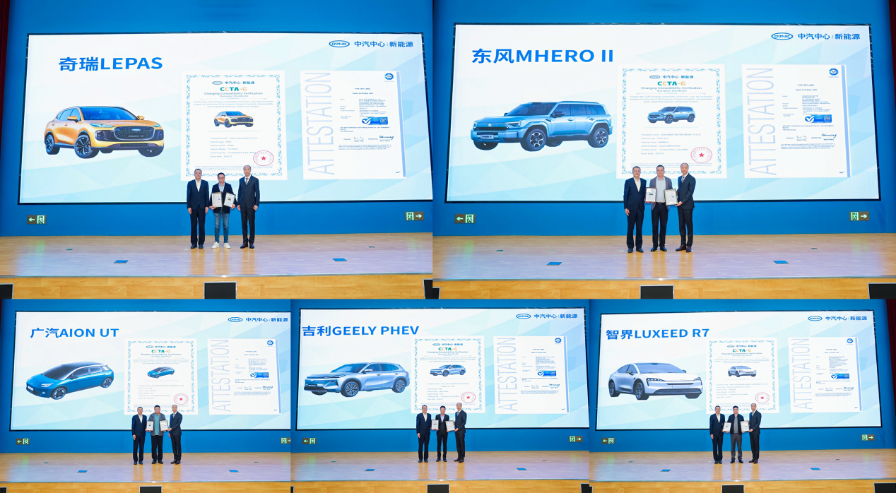 颁发首批CCTA充电兼容能力验证(欧标)证书&TÜV新能源汽车充电兼容功能认证证书