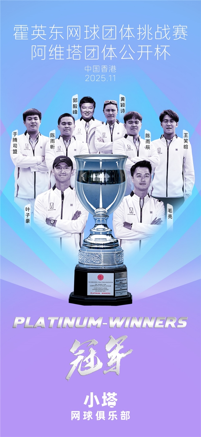 11月30日,2025霍英东网球团体挑战赛在香港维多利亚公园网球场落下帷幕,多个项目冠军各有归属。其中,阿维塔小塔网球俱乐部夺得2025霍英东网球团体挑战赛阿维塔团体公开杯铂金组冠军。霍英东网球团体挑战赛中国移动团体邀请杯铂金组冠军则花落摩根斯丹利。