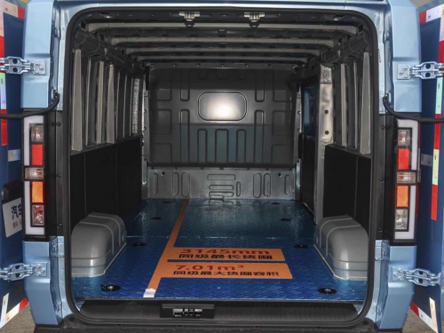 鑫源E3L凭借方正的车身结构和精心布局的货厢设计,提供了高达7.5m³的装载空间,货厢长度达到3145mm,能够轻松容纳标准木工板、管材等长条形货物。在实际装载测试中,它不仅能整齐码放70个矿泉水箱大小的货箱,剩余空间还可容纳床垫等大件物品,空间利用率高达95%。