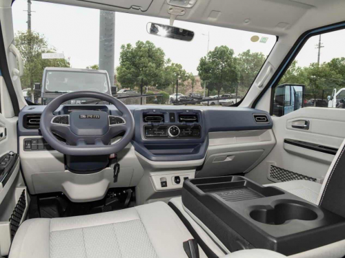 装卸货的便利性同样出色,尾门采用270°对开设计,开启面积达1.788㎡,叉车可直接进出;侧滑门宽达870mm,狭窄巷道也能轻松作业。货厢内部还配备了矩形轮毂包、货厢天钩、地钩及隐藏式照明灯等实用配置,不仅提升了货物固定的安全性,也优化了夜间装卸的便利性。此外,驾驶舱的创新全贯通座椅设计,让司机在等货间隙能平躺休息,副驾驶台面还可兼作临时餐桌或工作台,真正实现了工作与生活两不误。