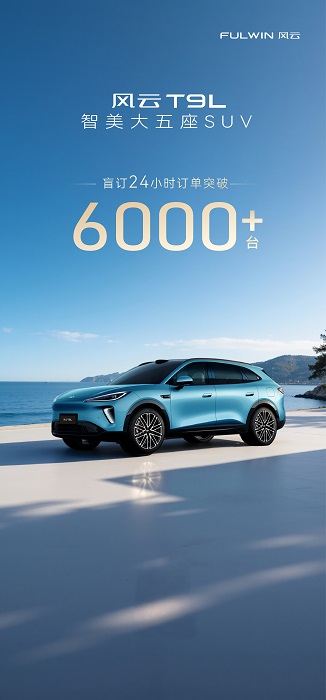 24小时6000+台盲订订单,不是靠流量炒作,而是用户对产品力最真实的信任票。在智能电动车竞争白热化的今天,风云T9L以9项同级第一/唯一的硬核配置,重新锚定中大型智能SUV的价值坐标,更对外界宣告:豪华不应是少数人的特权,应是大众可享的日常。风云T9L,正在让“豪华平权”从口号变为现实。