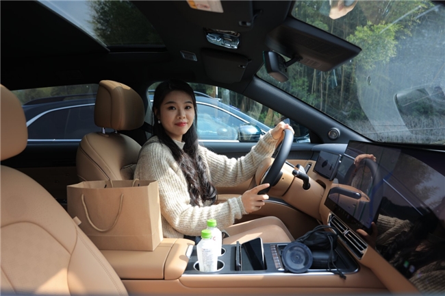 舒适配置越级,细节设计获赞。后排门板上的小屏可独立调节座椅通风、加热、按摩,这一设计被多位媒体老师提及并点赞。有媒体老师特别指出:“个人很喜欢二排门上的调节屏。”23扬声器伯牙之音、30吋6K屏、9.2L智能冷暖冰箱等配置,让试驾过程中的休憩时光更加惬意。