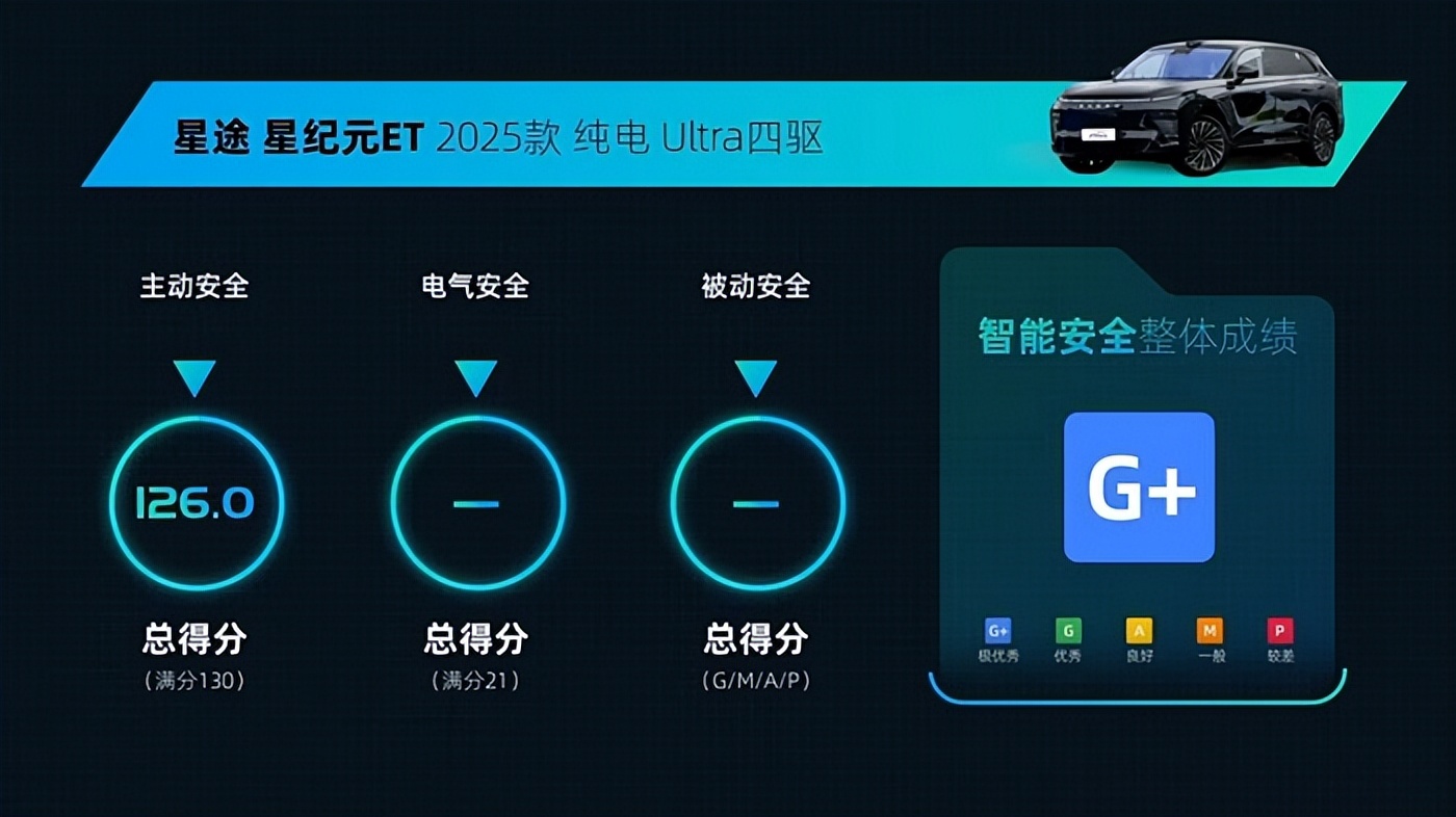 IVISTA中国智能汽车指数是中国汽研在中国汽车工业协会和中国汽车工程学会指导下,全球首个智能汽车的第三方评价体系,在智能汽车技术测试和评价中的重要角色。作为IVISTA中国智能汽车指数(2023版修订版)首批测试车型,星纪元ET以全项G+(极优秀)成绩通过测试既是对星途品牌以“科技新豪华”为核心理念的深刻践行,也标志着中国品牌在智能汽车核心技术领域实现了从“跟跑”到“领跑”的跨越,更重新定义了行业对智能驾驶安全性、可靠性的基准线。随着汽车产业向“智能移动空间”加速进化,星纪元ET将以此为起点,为全球智能汽车发展提供“中国方案”,让用户在智能出行时代真正享受到科技赋能的安全与便捷。