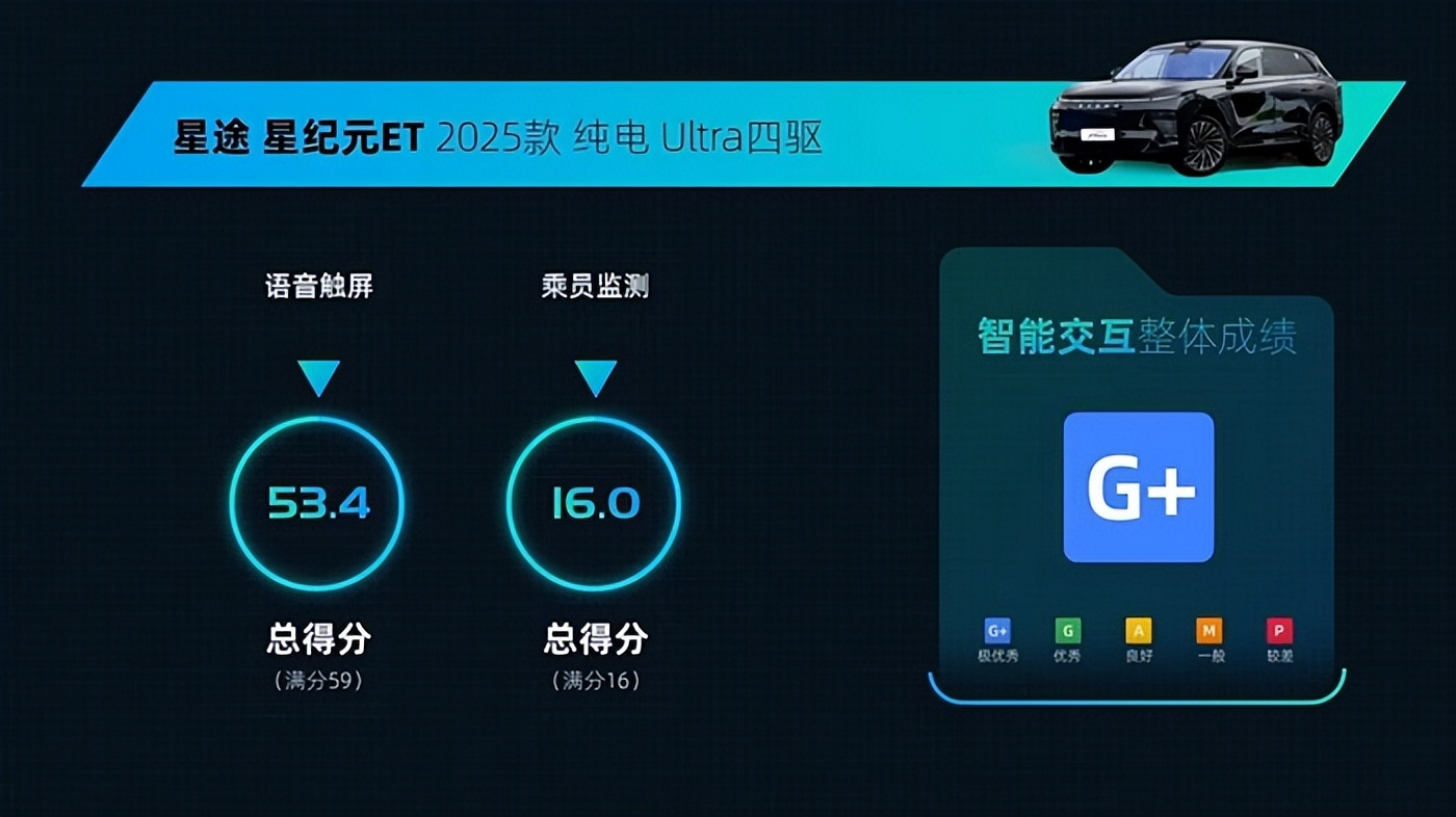7月11日,IVISTA中国智能汽车指数2025年度最新批次测评结果公布,2025款星纪元ET在智能安全、智能驾驶、智能泊车及智能交互四大核心分指数方面斩获最高等级G+(极优秀)成绩,以 “大满贯”的优异表现彰显出其在智能化领域的顶尖水准。