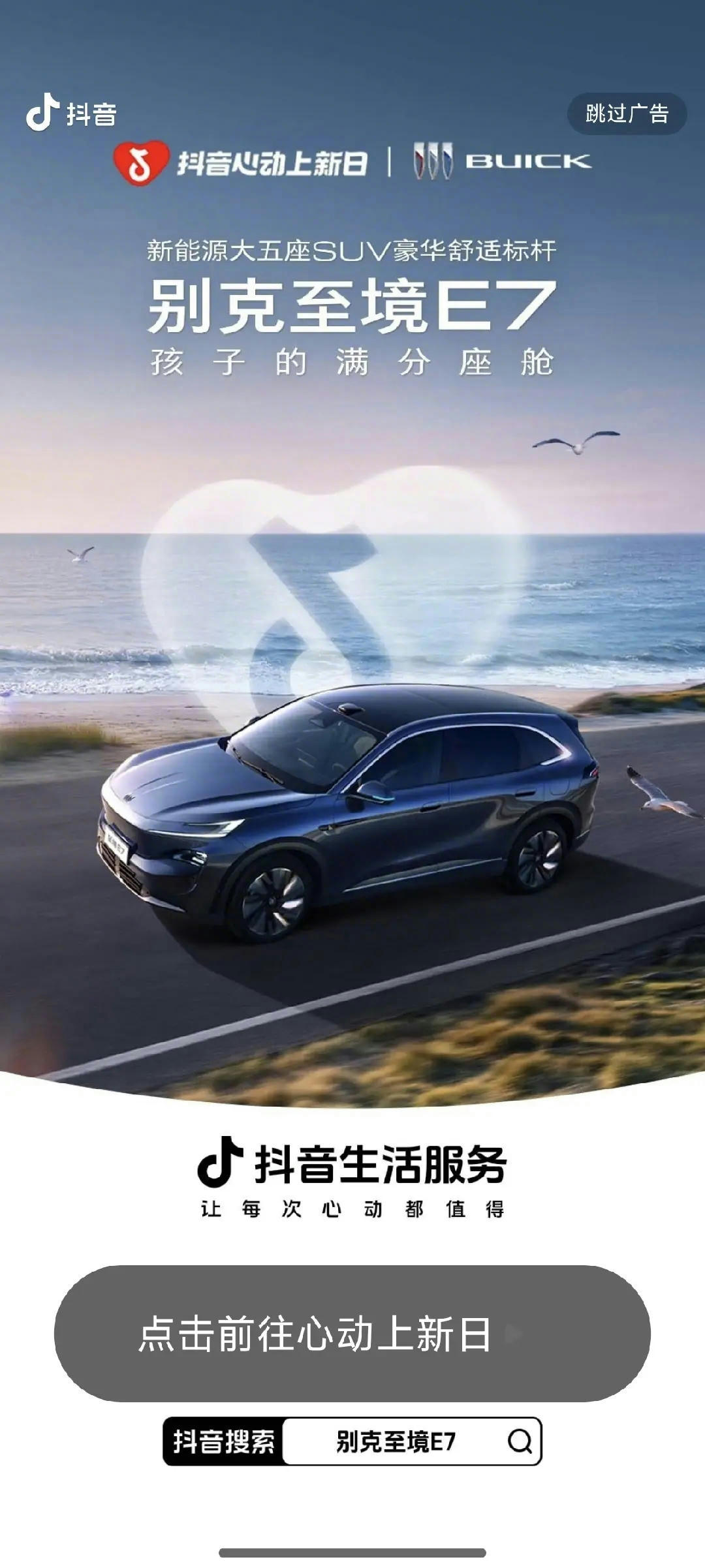 在此背景下,别克与「抖音心动上新日」深度绑定,以“家在E7”为核心主题,通过产品场景化创新与全域营销矩阵,打破行业传统发布模式。依托平台流量优势与内容生态,实现了从产品曝光到情感共鸣、再到销售转化的完整链路,最终斩获海量亲子家庭用户的认可。