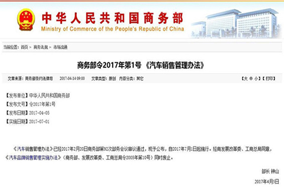 自商务部于4月发布《汽车销售管理办法》(以下简称《办法》)以来,蓄势待发的销售新政便引来了业内无数的热议。2017年7月1日,《办法》正式实施,在挥手告别长达12年的《汽车品牌销售管理》之后,取而代之的《办法》在为国内汽车市场开启全新篇章的同时,也为市场赋予了更多的挑战。 [ 详 细 ]